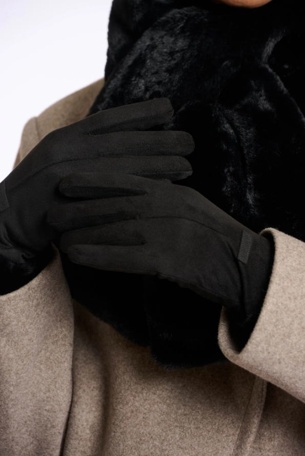 Super soft and cozy gloves with a faux-fur top side. These gloves show a visible seam and and can complement all your coats and jackets.