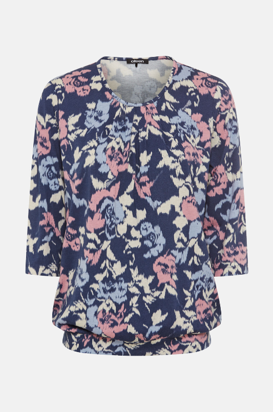This shirt with a modified round neck and 3/4-length sleeves is a versatile companion for feminine everyday looks. The vibrant all-over design adds visual freshness, while the Clara fit with its slightly flared silhouette is particularly flattering. The cotton and modal blend feels pleasantly soft against the skin. Another plus: The soft and supple TENCEL™ modal fibers used in this style are made from sustainable wood, and the production process meets high environmental standards. TENCEL™ is a trademark of Lenzing AG. Length approx. 62 cm.