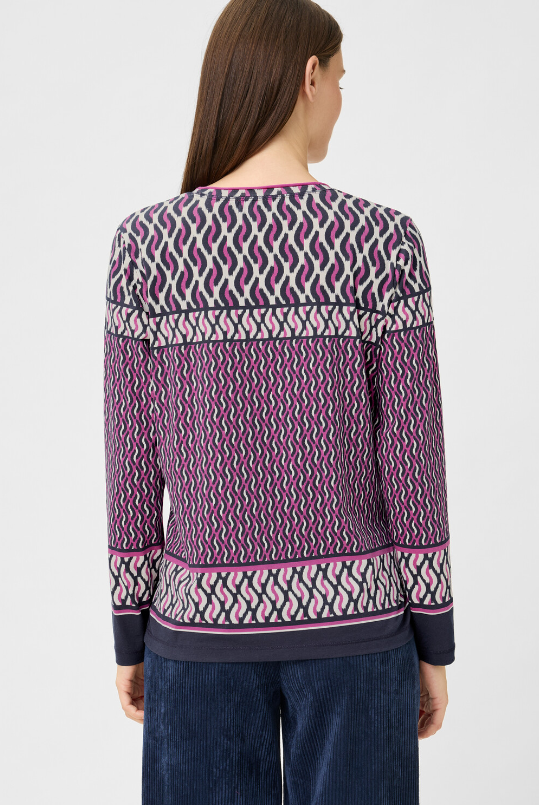 This long-sleeved shirt features an exciting panel design and a classic round neck. The cotton-elastane blend offers pleasant stretch and a perfect fit. A fashionable everyday piece. Length approx. 62 cm.