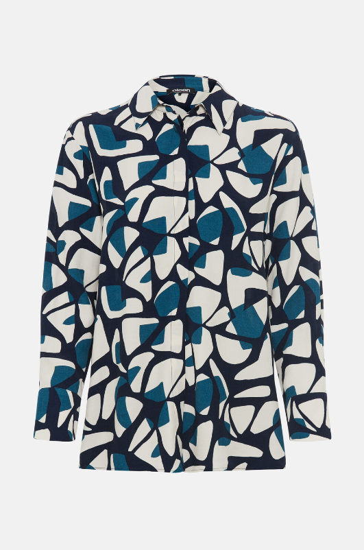 This classic-cut blouse boasts a timeless design. The concealed button placket adds a special touch. The all-over print with geometric shapes in beautiful colors lends the blouse a modern and stylish touch. A versatile piece that can be easily integrated into a variety of outfits. Crafted from soft viscose. Bonus: This style contains LENZING™ ECOVERO™ viscose, which is obtained from controlled wood sources. LENZING™ and ECOVERO™ are trademarks of Lenzing AG. Length approx. 66 cm.