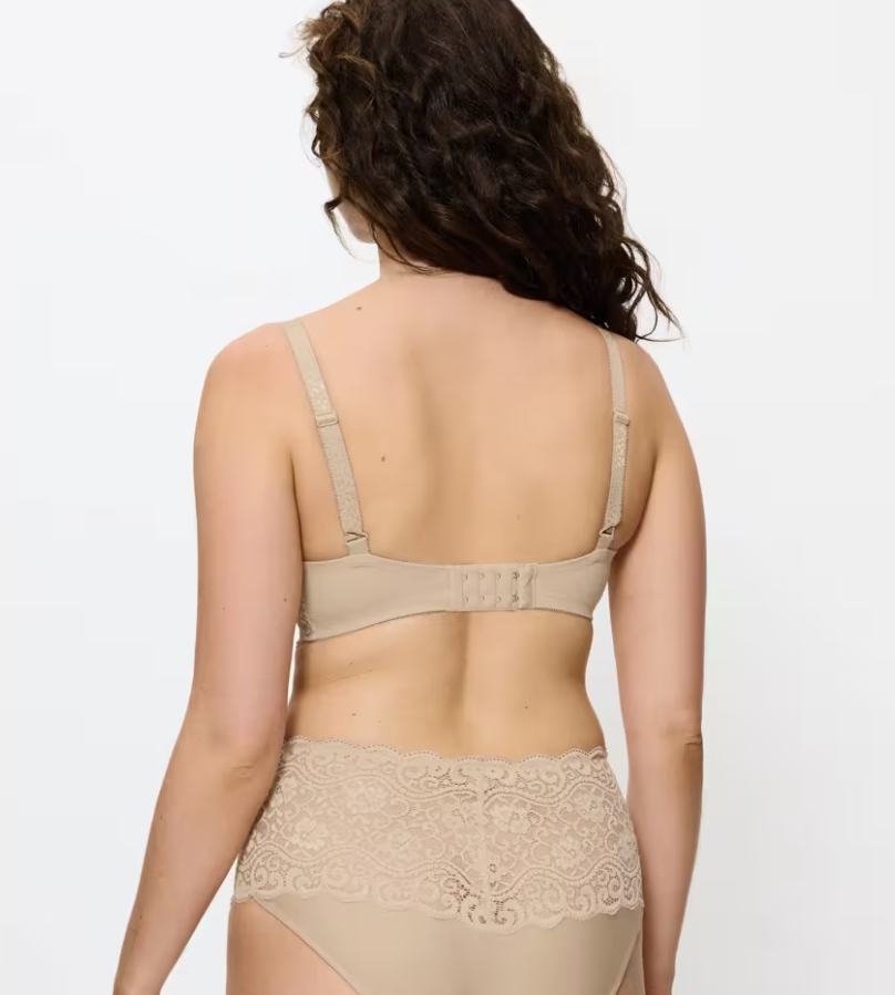 Softly supportive semi-transparent unpadded cups in comfortable stretch lace