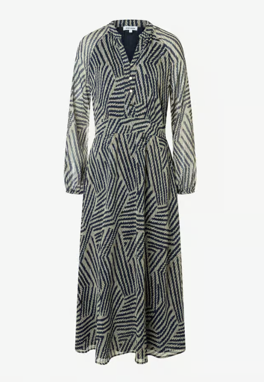 This maxi-length chiffon dress by MORE & MORE with a modern all-over print looks equally good with a classic blazer, casual denim jacket, or short knitted vest and guarantees a stylish appearance.