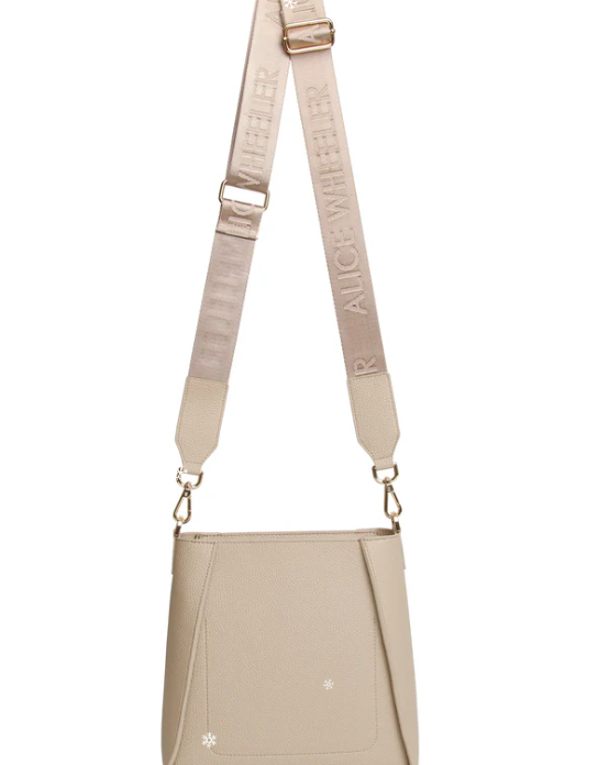 Designed for day-to-day use, it offers a secure zip fastening and a spacious, fully lined interior to keep your essentials organised. The adjustable strap allows you to wear it comfortably as a crossbody or shoulder bag. It’s also compatible with interchangeable straps, so you can personalise your style with options from the Alice Wheeler Strap