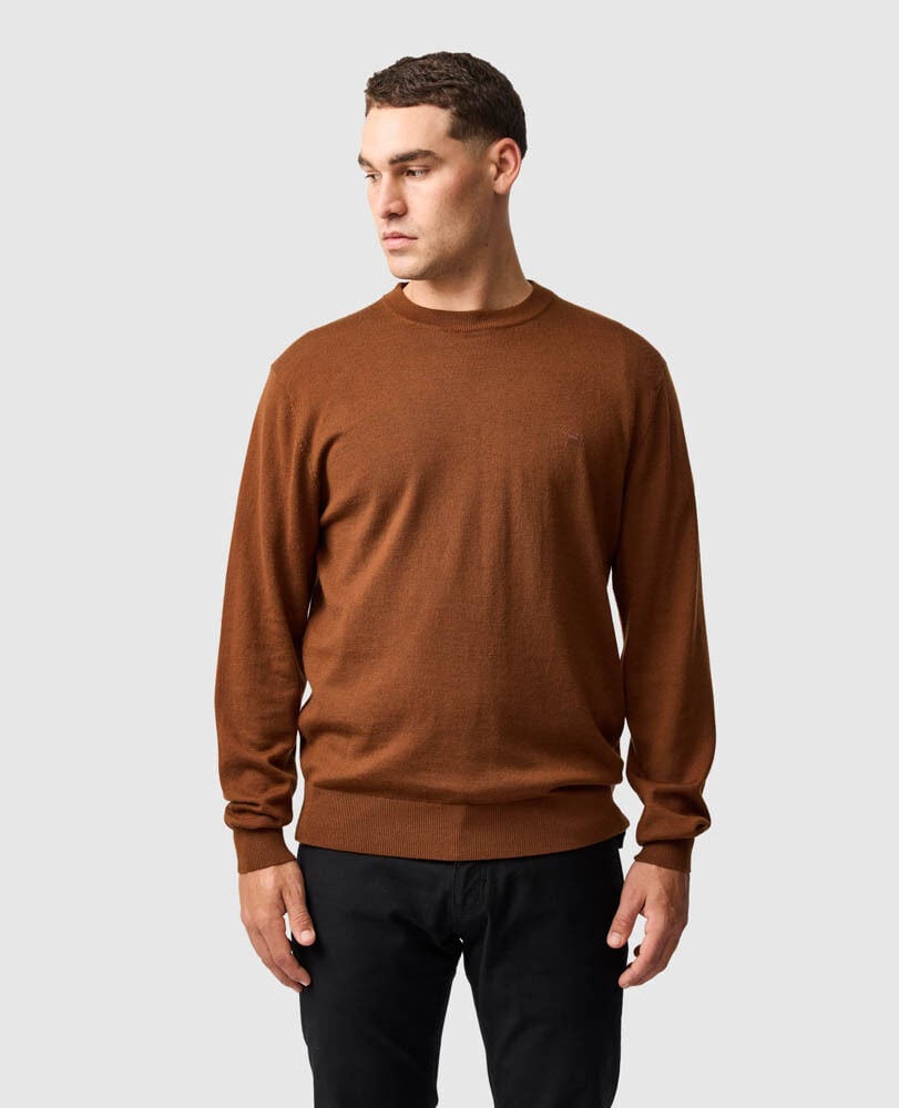 Timeless crew neck design for versatile style, Meticulous fully fashioned construction, Ribbed cuffs and waist with added stretch, Contrast tipping inside the back neck and dog embroidery add unique touches