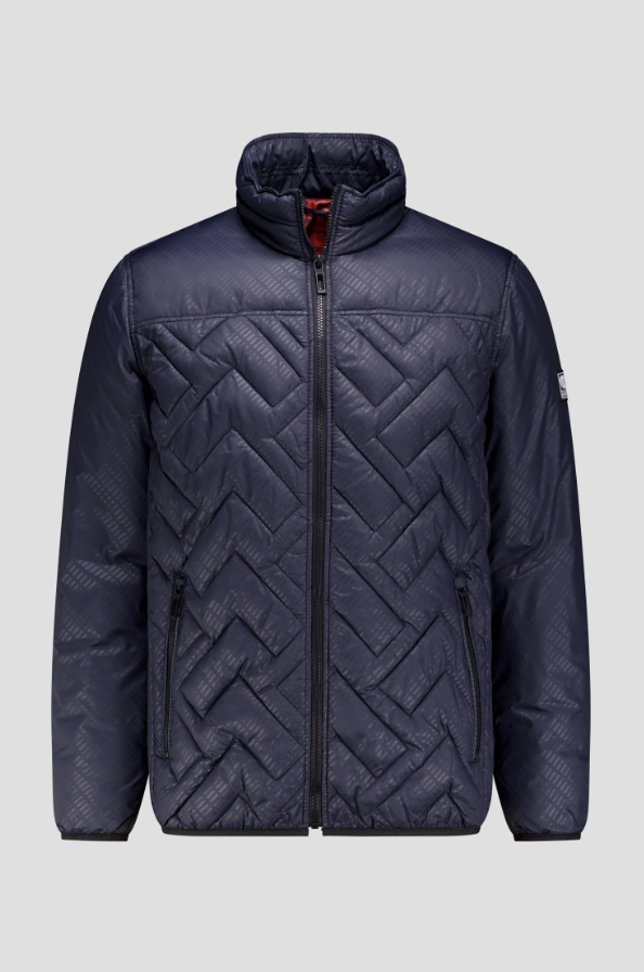 This navy quilted jacket from Gate One will keep you warm and dry in comfort this fall. It's lightweight, and its neutral color makes it easy to combine with a variety of outfits . The jacket has a short cut, a contrasting black zipper, elasticated piping, and a logo on the left shoulder. Thanks to the two zippered side pockets, you'll never lose your keys, and inside you'll find an additional slip and zippered pocket for your wallet. The delicate square pattern and quilted torso give the jacket a contemporary look.