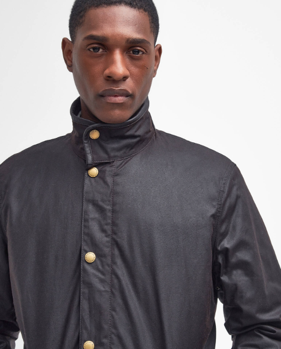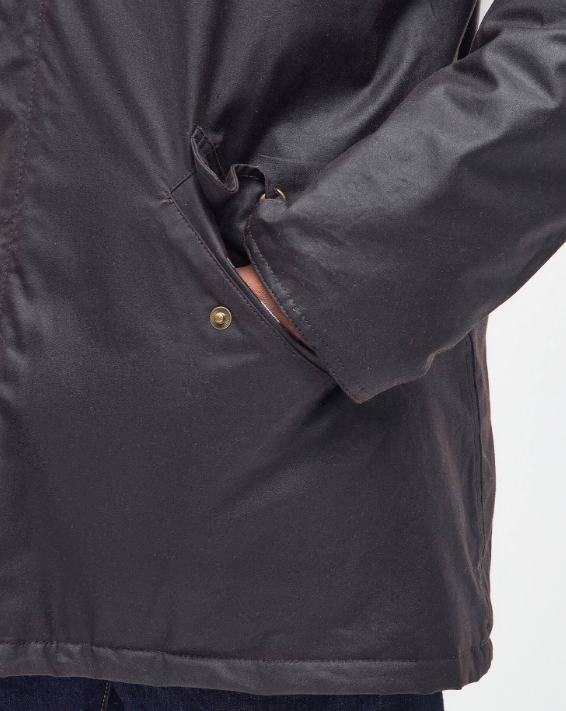 This traditional Barbour wax jacket is constructed with a 6oz Sylkoil waxed cotton outer and a warm box-quilted lining. Angled pockets fasten with stud-close flaps to keep essentials safe and secure.
