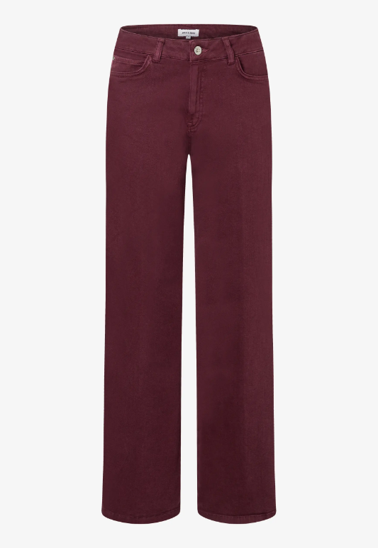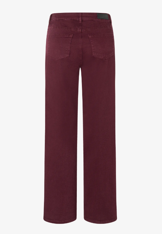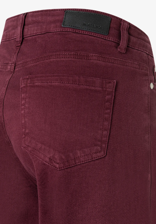 The burgundy-red colored denim from MORE & MORE in the classic 5-pocket style is a true all-rounder that can be used to create countless looks. It looks great with both a flowing chiffon blouse and a casual striped shirt, and the stretch content makes it extremely comfortable to wear.