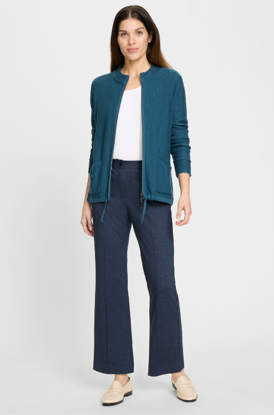 This cardigan is the perfect companion for chilly evenings. With its short stand-up collar, zipper closure, patch pockets, and drawstring hem, it exudes a sporty, casual style. Loosely fitting and straight cut, it's ideal for combining with a variety of outfits. The long sleeves and comfortable blend of materials make it a comfortable piece for any occasion. Length approx. 58 cm.