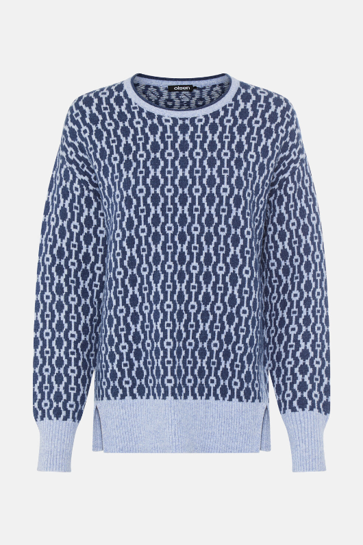 Creative and comfortable: This sweater with its expressive all-over design adds color and texture to any wardrobe. The relaxed Cora fit with dropped shoulders ensures relaxed elegance, while the classic round neck completes the design. Crafted from a soft blend of materials. Bonus: This style contains LENZING™ ECOVERO™ viscose, which is obtained from controlled wood sources. LENZING™ and ECOVERO™ are trademarks of Lenzing AG. Length approx. 62 cm.