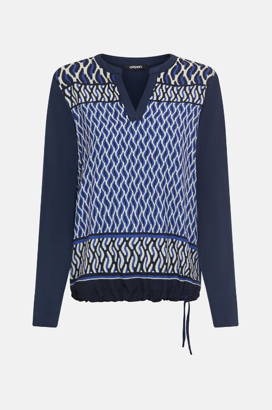 This long-sleeved shirt is a fashionable highlight with an artistic panel print and tunic neckline. The soft fabric blend ensures comfortable wear and a stylish look—perfect for modern, statement-making outfits. Bonus: This product contains LENZING™ ECOVERO™ viscose, which is obtained from controlled wood sources. LENZING™ and ECOVERO™ are trademarks of Lenzing AG. Length approx. 60 cm.