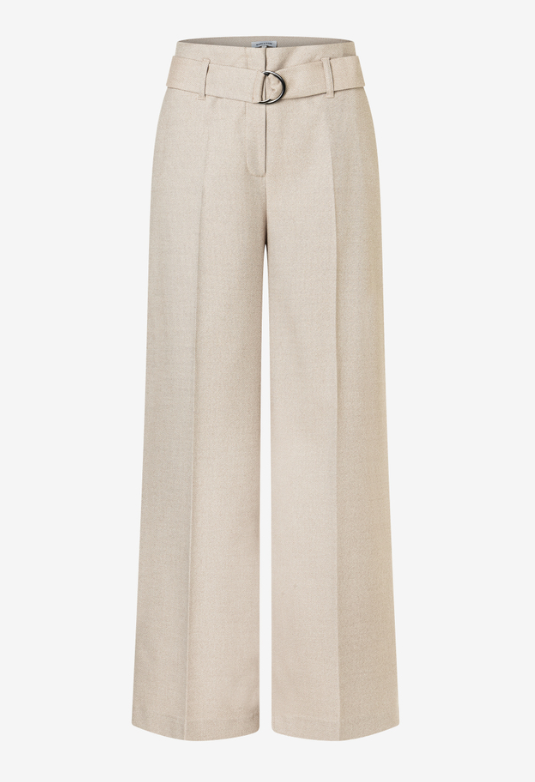 These modern, wide-legged trousers from MORE & MORE in versatile beige make a super stylish business suit with a matching blazer, but they also work very casually with a fine-knit sweater, denim jacket, and sneakers.