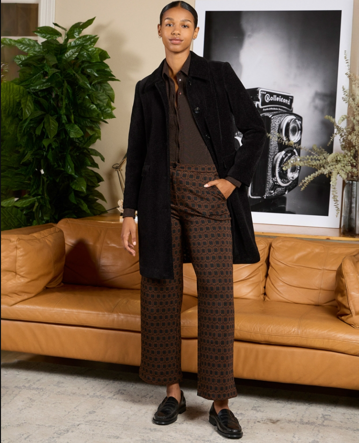 Straight cut pants with button and zipper front closure. Soft and stretchy fabric with an attractive geometric print that stylizes without sacrificing comfort. Perfect to combine with the jacket or with plain shirts for a more relaxed look.