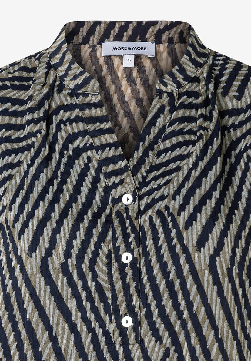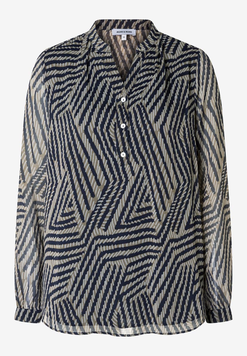 This flowing chiffon blouse from MORE & MORE, featuring a graphic all-over print and a small stand-up collar, will breathe new life into your wardrobe. The loose, pull-on fit with a short button placket ensures easy wear, while small pleat details and side slits add feminine accents. Style this stylish long-sleeved blouse either classically with smart business trousers or casually with casual jeans for a modern look.
