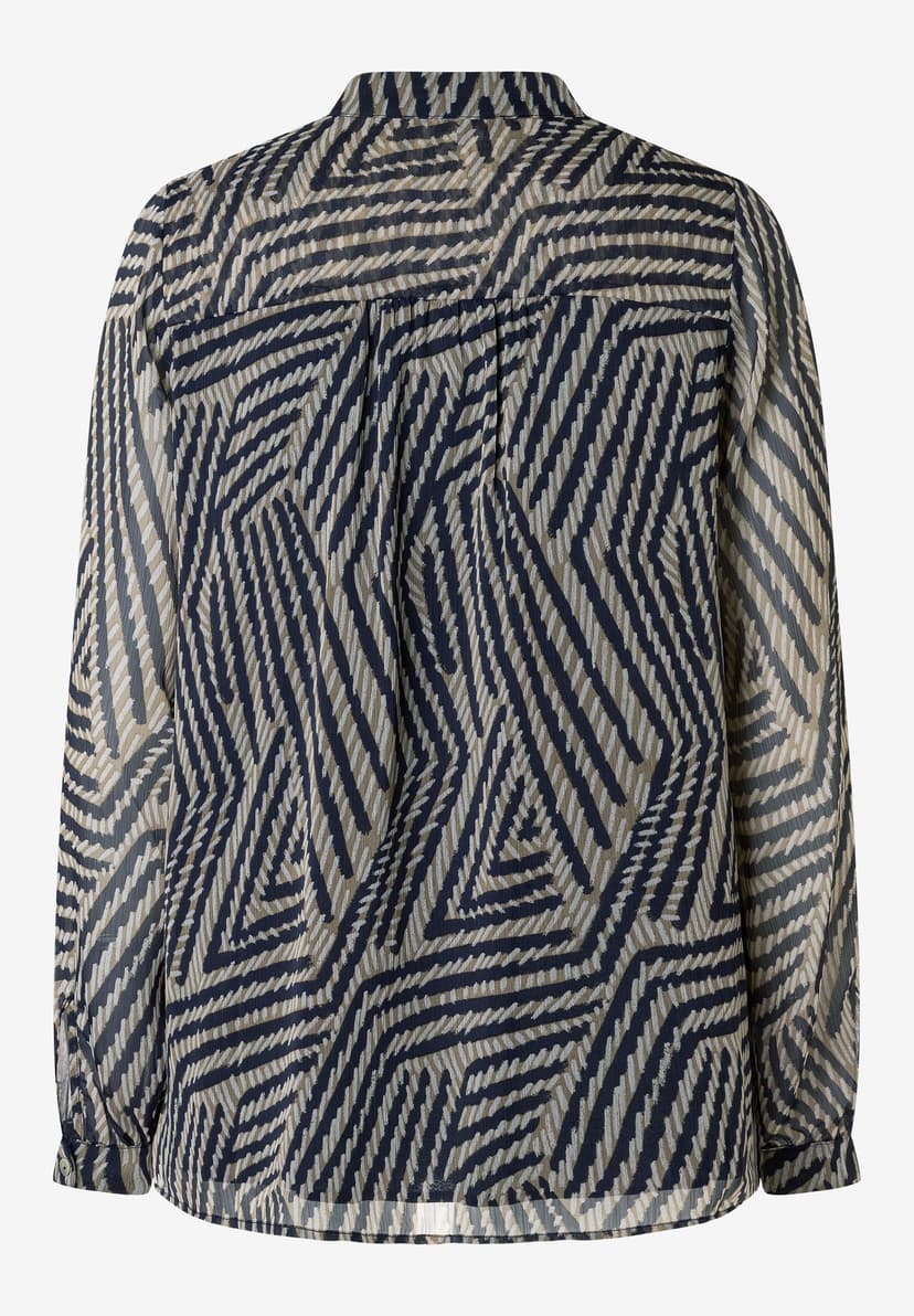 Loose, flowing silhouette, Short button placket at the front, Small stand-up collar and pleats at the neckline, Long sleeves with narrow, buttoned cuffs, Back with yoke and gathers, Hem with small slits in the side seam, Slightly transparent chiffon quality with attractive all-over print, Body opaquely lined