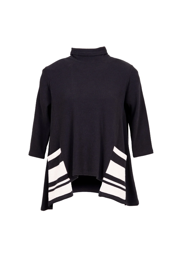 PERUZZI dipped pocket fleece top featuring double-stripe pocket detailing, a stylish blend of comfort and modern design.