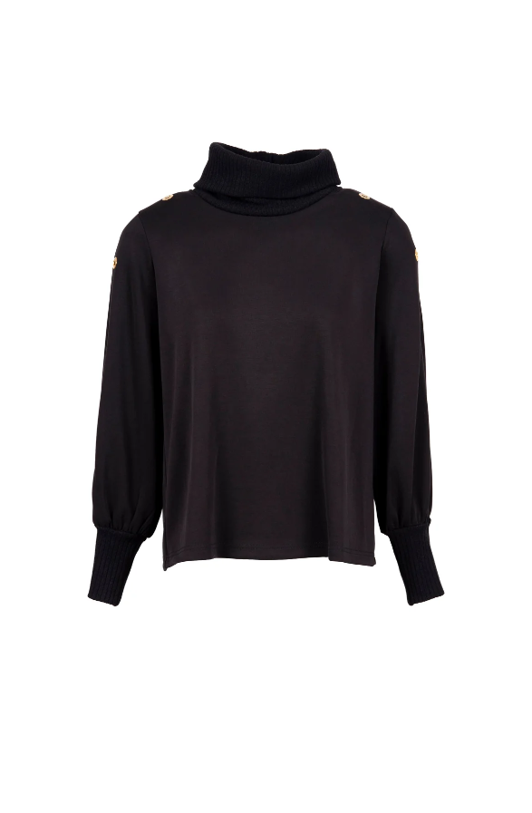 PERUZZI rivet top featuring a knitted fold-over neckline, combining subtle detailing with comfortable style. Style this top with a trouser and flat or boot to complete the look.