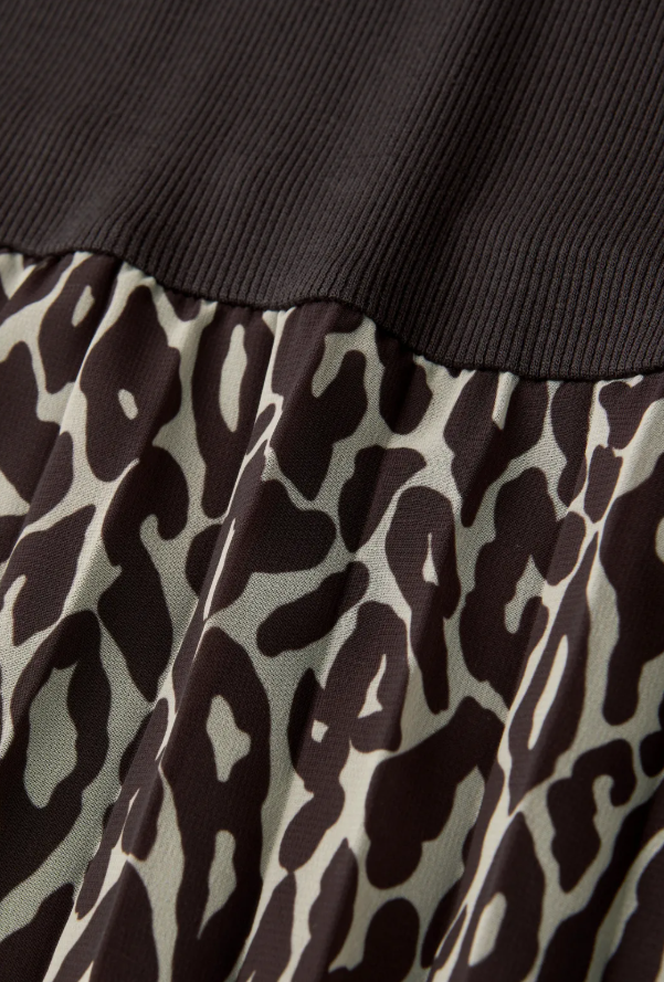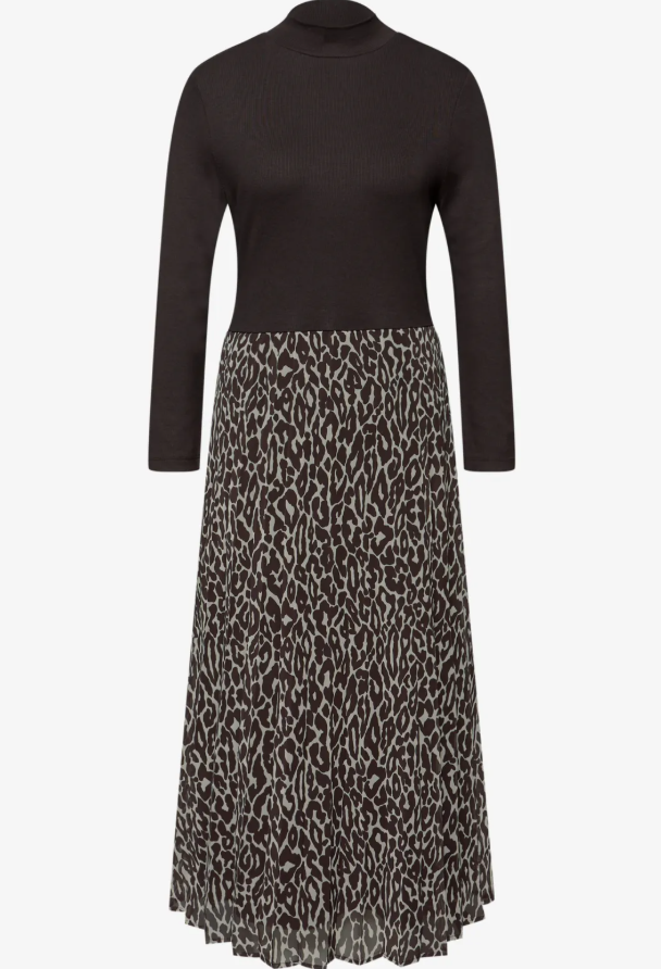 This women's dress from Street One combines a finely ribbed jersey top in a solid color with a feminine pleated skirt in a leopard print – modern and stylish. The dress is comfortable to wear and can be styled fashionably. The comfortable fit and the striking animal print make this dress a real eye-catcher in your wardrobe.