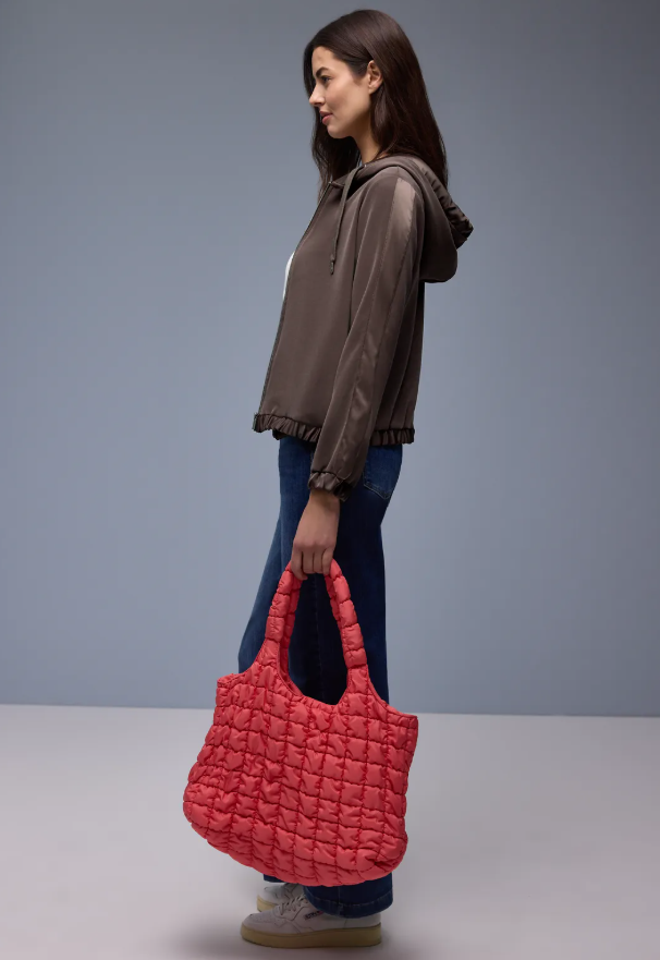 This women's hoodie jacket from Street One combines sporty style with a sophisticated silk look. The silky sheen, elasticated satin-look cuffs, and drawstring hood make it a stylish everyday companion. A zipper completes the design – perfect for cozy and modern layered outfits.