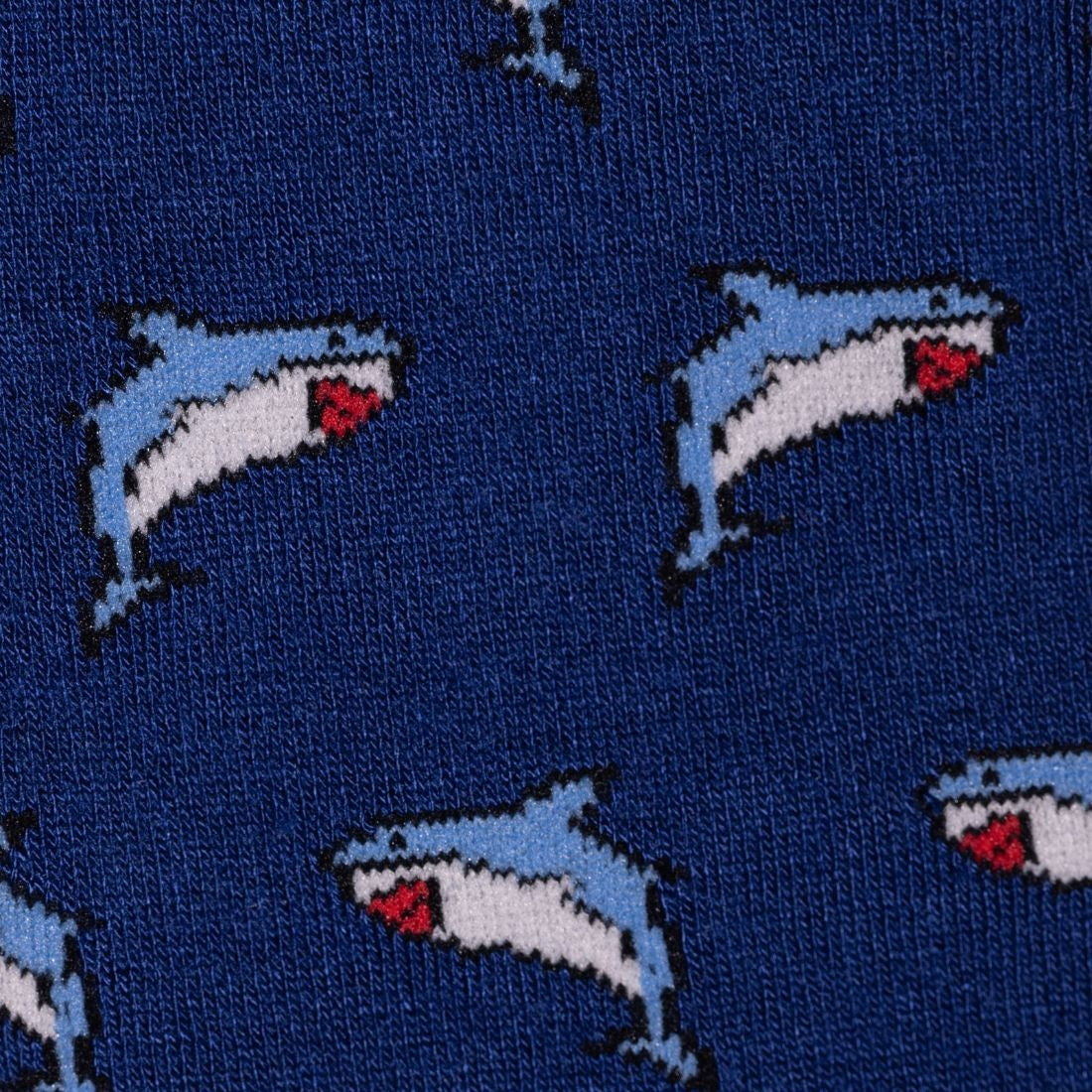 Fierce and gentle all in one, our Shark Bamboo Socks boast a royal blue canvas with vibrant pink trimmings, dotted with the world's most deadly creature. There's no doubt these Shark Socks will bring a charming nautical motif to your sock drawer.