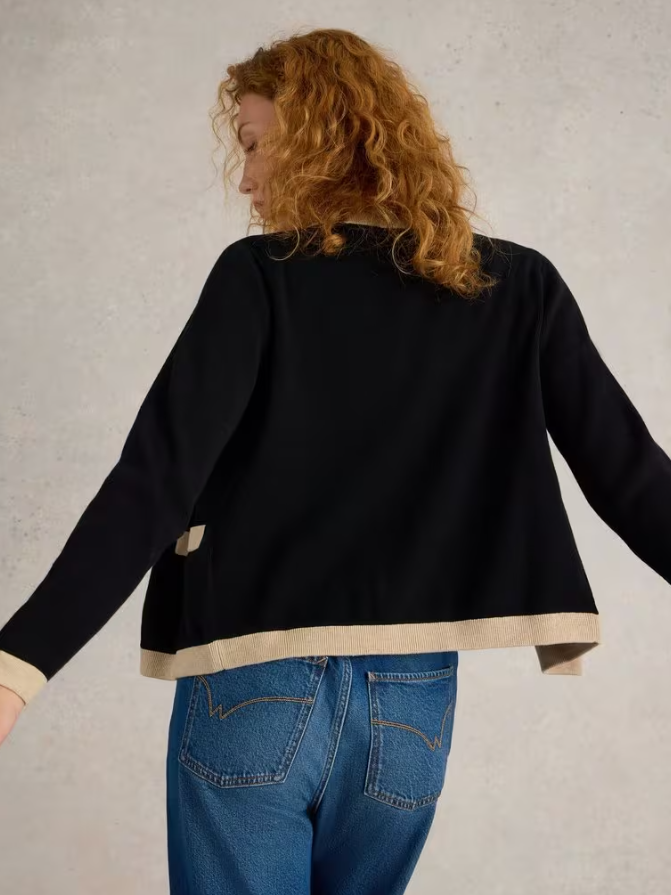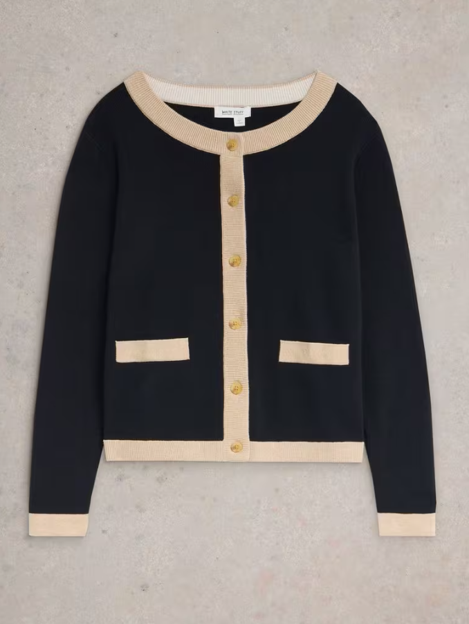 This is a smart choice. 100% organic cotton. Classic cardigan shape. With cute, fake pockets and contrast tipping that give it a polished look. It’s like your cardi just got a promotion.