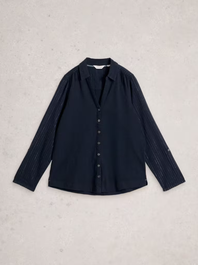 Wear your sparkly bits on your sleeves. That's what this Annie shirt is doing. It's made with a mix of fabrics (but all still 100% organic cotton) so you can show your shiny side.