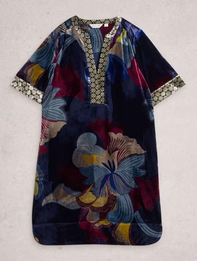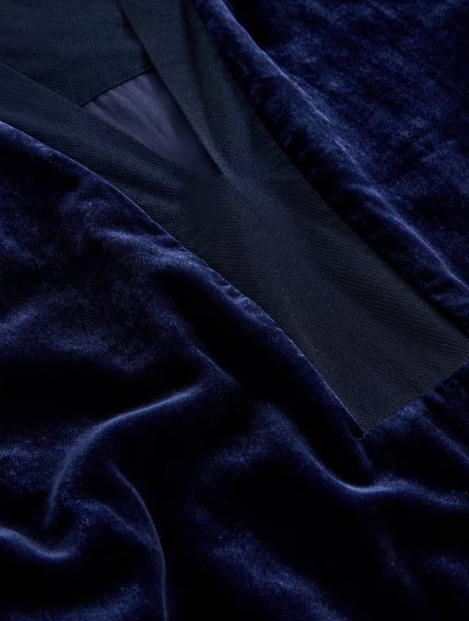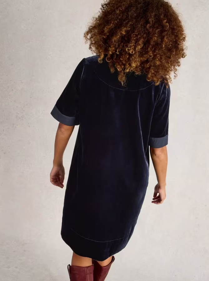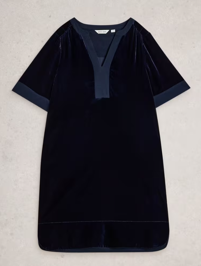 Our June dress has gone soft. (Well, softer.) We've given her a velvety refresh and kept the notch neck and short sleeves. She's still knee length too, so you can show off those dance moves.