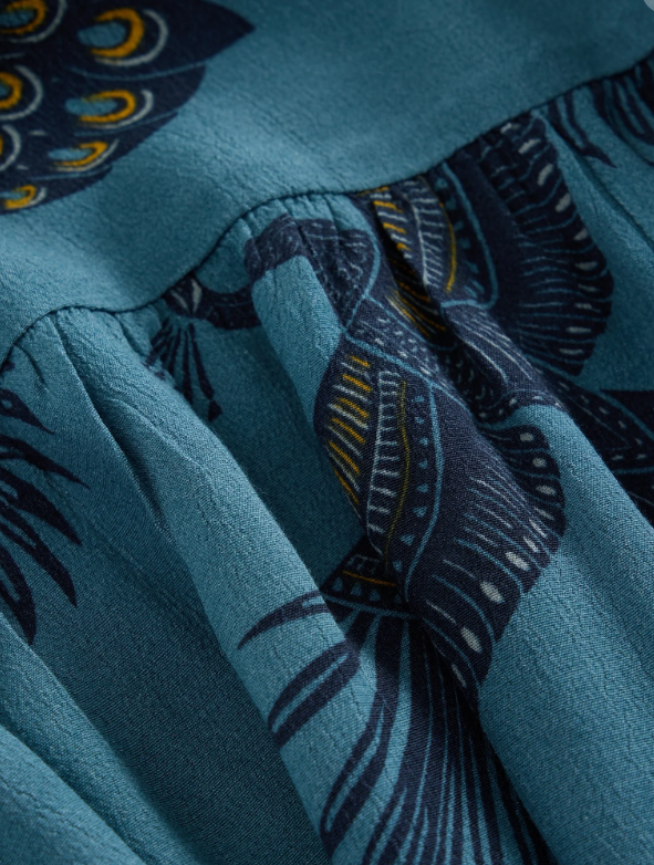 The Harpreet Dress by White Stuff is a standout in teal, featuring a beautiful large bird print and a feminine ruffle detail at the knee. Crafted from 100% viscose for a soft, fluid drape, this V-neck dress moves gracefully and feels effortlessly comfortable. A perfect blend of playful print and elegant silhouette — ideal for dressing up or down this season.