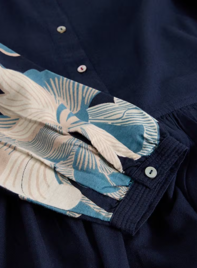 We've taken the shirt dress and added a dose of White Stuff. Like long patterned sleeves and a classic collar. Taking the print down to the skirt and adding some lovely gathered detailing.