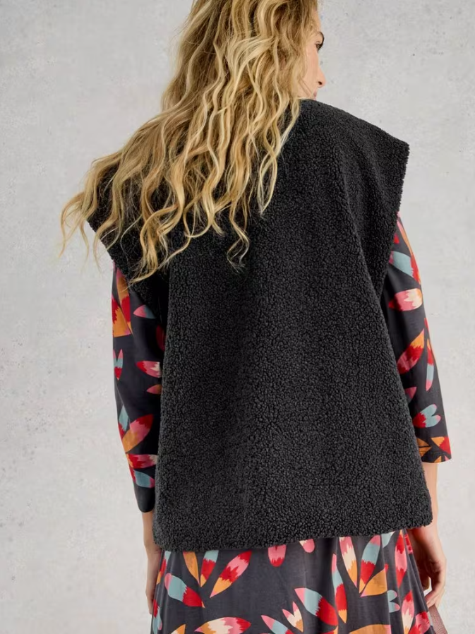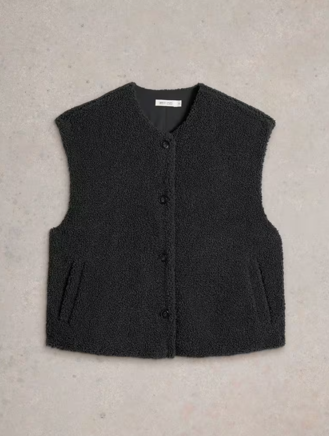 Borg. Fun to say. Lovely to wear. Especially when it's in the form of a dusty pink gilet, ready to layer with all your other cold-weather things.