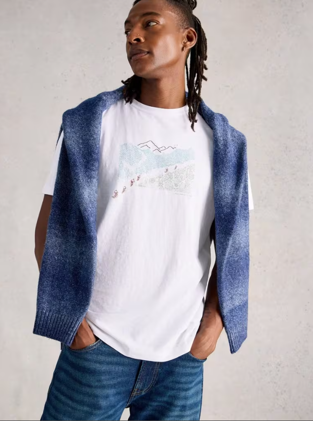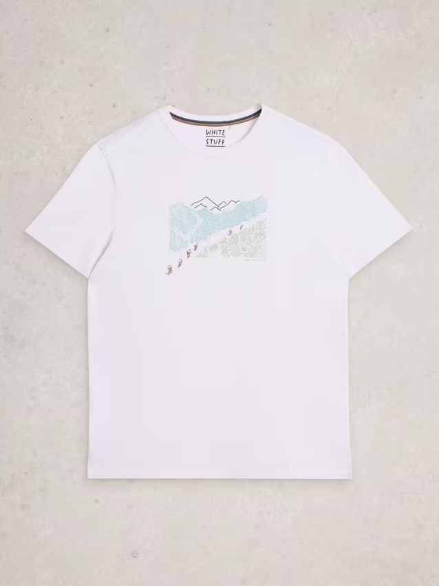 This was almost a plain white tee. But that didn’t feel very ‘us’. So we gave it a cool mountain biking print. (Much better.)