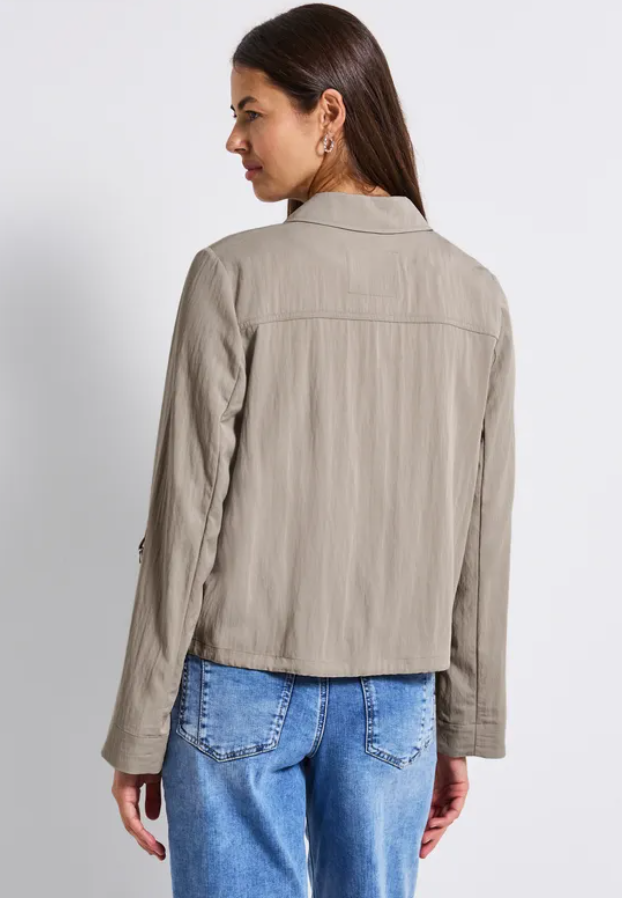 This summery structured jacket from Street One for women combines the charm of an overshirt with fashionable details. Patch pockets, a shirt collar, and turn-up sleeves give the look a casual touch, while the drawstring hem ensures a custom fit. The lightweight fabric is comfortable to wear and makes the jacket the ideal layering piece.