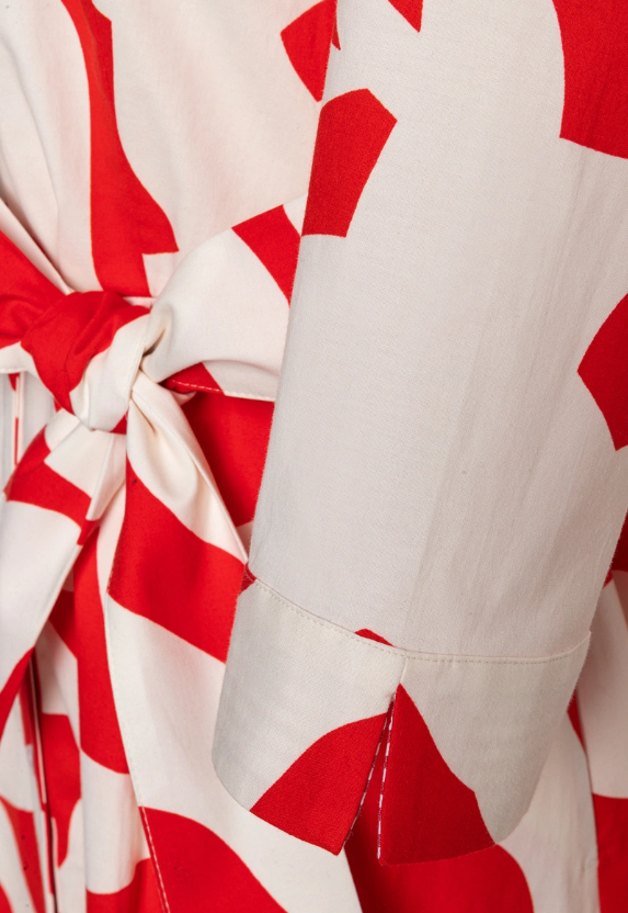 This summery shirt dress from MORE & MORE, with its trendy red and white graphic print, is a real eye-catcher. Style it with heels, sandals, or sneakers depending on the occasion for a modern look.