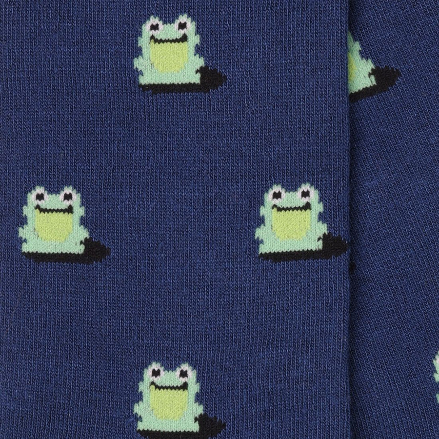 The design of these bamboo socks features a cute and colourful frog pattern, set against a royal blue background. The frog graphics are fun and playful, making them stand out and catch the eye.