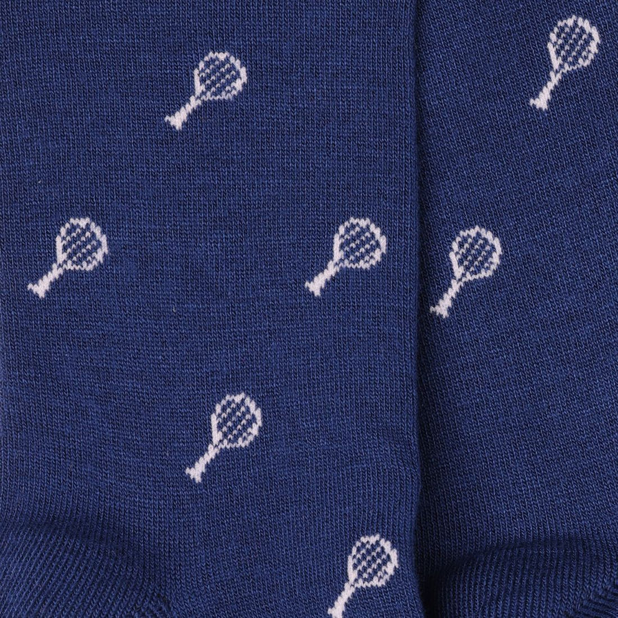 The design of these bamboo socks features a playful tennis racquet pattern, set against a stylish blue background. The tennis racquet graphics are fun and energetic, making them stand out and catch the eye.
